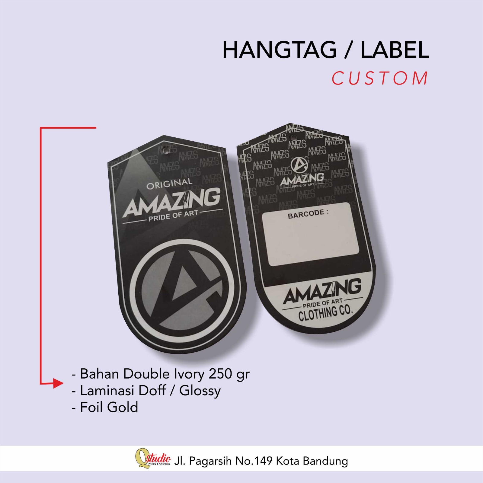 Selain itu, hangtag juga dapat digunakan untuk keperluan branding atau promosi, dengan mencantumkan logo, slogan, atau pesan lain yang terkait dengan merek atau produk. Hangtag dapat dirancang dengan berbagai bentuk, ukuran, warna, dan material, seperti kertas, karton, kulit, atau plastik, untuk menciptakan tampilan yang menarik dan sesuai dengan citra merek.