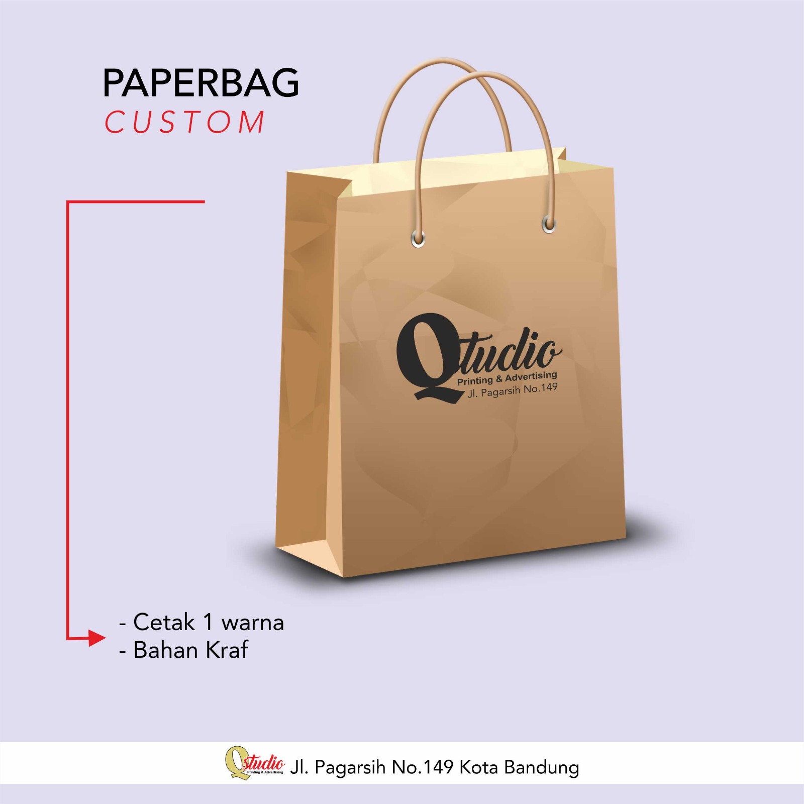 Paper bag adalah tas atau kantong yang terbuat dari bahan kertas atau karton yang digunakan untuk membawa dan menyimpan berbagai macam produk seperti makanan, pakaian, atau barang-barang lainnya. Paper bag biasanya dilengkapi dengan pegangan atau handle yang terbuat dari bahan serupa atau bahan lain seperti tali rafia atau bahan sintetis.